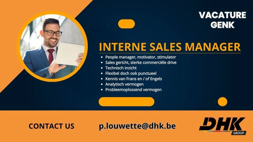 Solliciteer dan vandaag nog en word onze nieuwe Interne Sales Manager = p.louwette@dhk.be